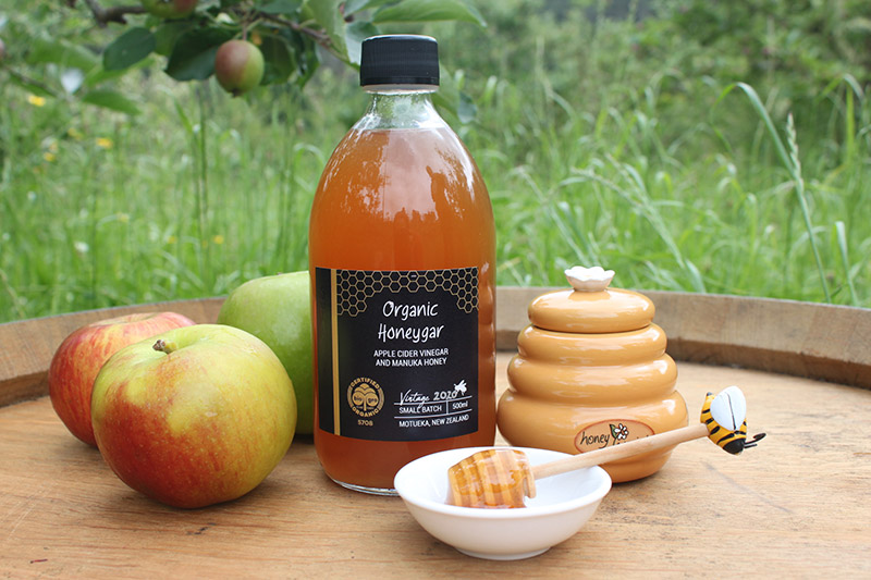 Apple-cider Honeygar is a sweet and sour blend of our certified organic Apple-Cider Vinegar and our Raw Manuka and Honeydew Honey. Apple-cider Honeygar has long been used for numerous health benefits.